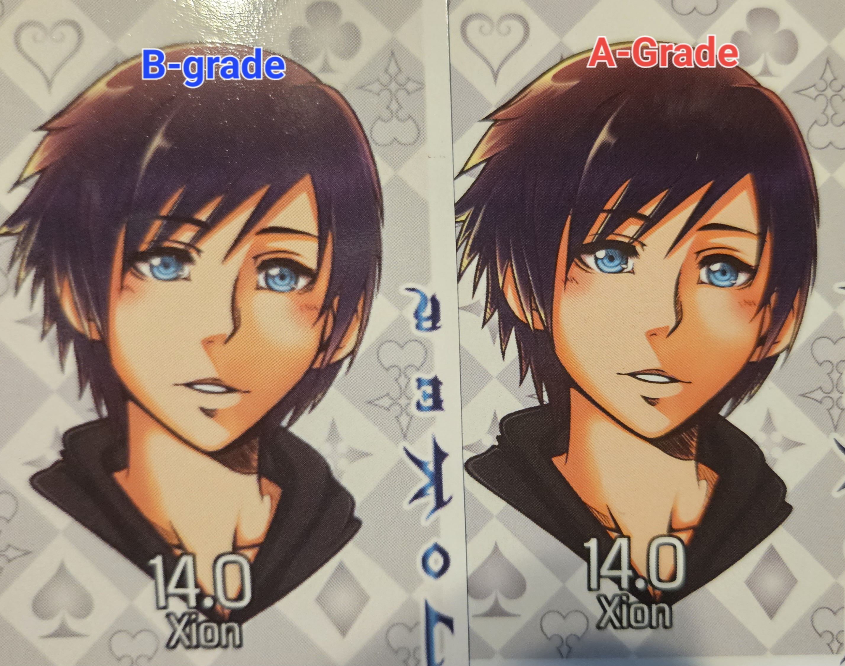 *B-Grade Decks: The color, card stock & box remain the same but the line art on the faces is a bit more blurry than the A-Grade. Not noticeable until placed side by side with an A grade card. For this reason, I'm taking a little bit off. (See picture) There until supplies run out.